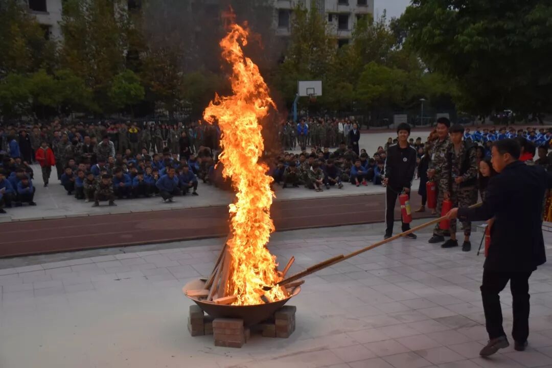 演练反复进行,火焰反复的燃烧,最后一次老师加足了汽油,这次的火焰,燃烧的很大,不敢想象如果这是真是发生的,那么该有多少人被火势困住。