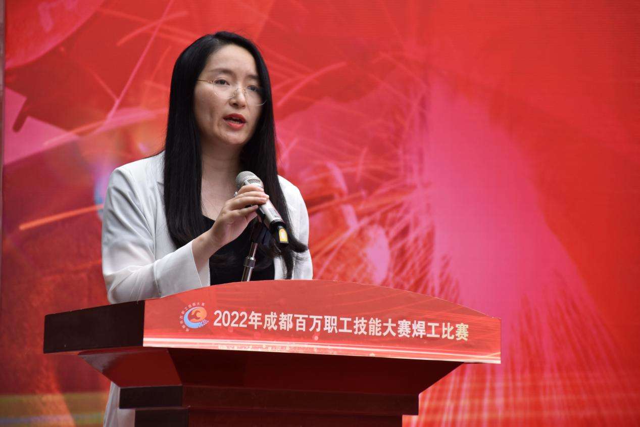 金堂县人民政府副县长岳金玫致欢迎词。她表示劳动者素质对一个国家、一个民族发展至关重要,是技能人才队伍建设的根本遵循。此次焊工技能大赛必将发掘更多高技能人才,激励广大产业工人勤于钻研技术、练就过硬本领,并以此为契机,推动全县广大职工传承匠心、精进技能、在互学互鉴、奋勇争先中创造新的光荣业绩,为我县高质量建设“成东中心、公园水城”贡献产业工人强大力量!以实干实绩迎接党的二十大胜利召开!