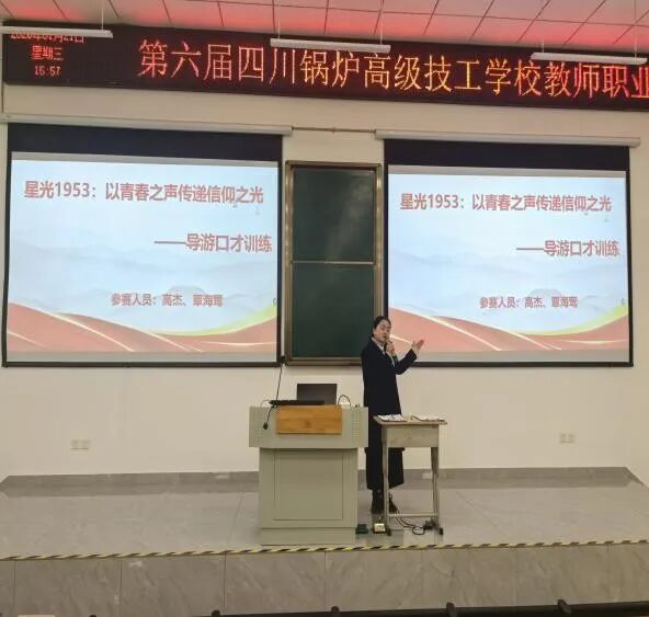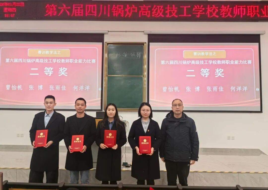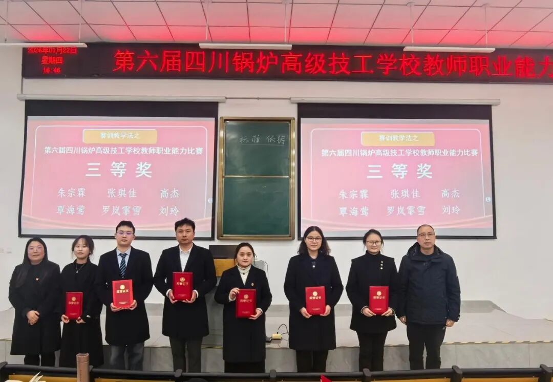 为深入贯彻习近平总书记关于大力发展技工教育的重要指示精神,全面落实立德树人根本任务,推动课程思政与专业教学深度融合,全面提升教师教学能力与育人素养。 为达到“赛训教学,师生共进”的目的,四川锅炉高级技工学校于2026年1月21日顺利拉开了第六届教师职业能力比赛的序幕。本次有50名教师参赛,以“两人组对”的全新形式同台竞技,一人负责说课、一人负责无生授课、两人共同完成答辩,展现了团队协作的力量与个人教学的风采。 执行校长强娜宁、副校长李慧国、校长助理徐丽亲临现场指导比赛;学校聘请朱红梅、张琴等9人担任比赛评委。 比赛分为四个环节:教学设计、现场说课、现场无生授课的比赛方式及答辩。现场说课和无生授课比赛方式是在赛前通过抽签来决定说课和授课选手,答辩由两人共同完成。 现场说课 现场授课 现场答辩 经评审委员会依据公平、公正、公开的原则,综合选手临场表现及相关标准评定比赛结果,由执行校长强娜宁正式宣布比赛名次:曾君怡、卢锐荣获一等奖,曾怡帆、张博、张雨佳、何洋洋荣获二等奖,朱宗霖、张琪佳、高杰、覃海莺、罗岚霏雪、刘玲荣获三等奖,6组选手荣获优胜奖。 一等奖 二等奖 三等奖 优胜奖 四川锅炉高级技工学校执行校长强娜宁赛后总结讲话,充分肯定了参赛队伍的教学功底扎实,课程思政的融入,工学一体的教育理念,同时也为教师提出优质的建议,要积极的在工作中不断学习,在大赛中努力创新! 以赛促教、以赛促研、以赛促建。本次比赛不仅为我校教师搭建了展示风采、交流学习的平台,更进一步凝聚了“思政育人”的共识,推动了我校课程思政建设向纵深发展,强化了工学一体化教学,促进教师专业化发展,进一步推进学校内涵建设,为职业教育高质量发展注入不竭动力! 来源:教务处 审核:徐丽